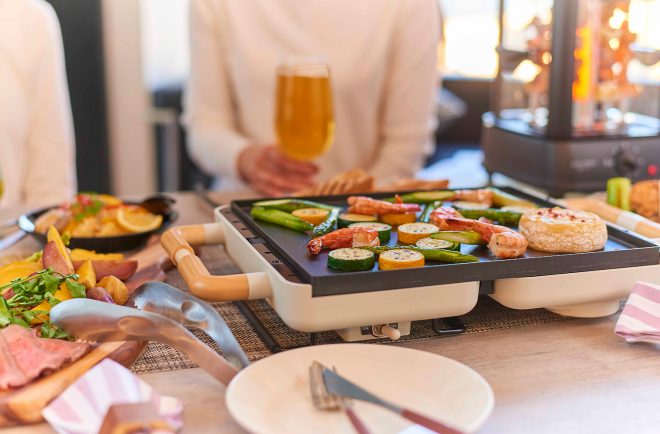 開くと正方形の形になるためお洒落。(ホットプレートは長方形が多いイメージ)