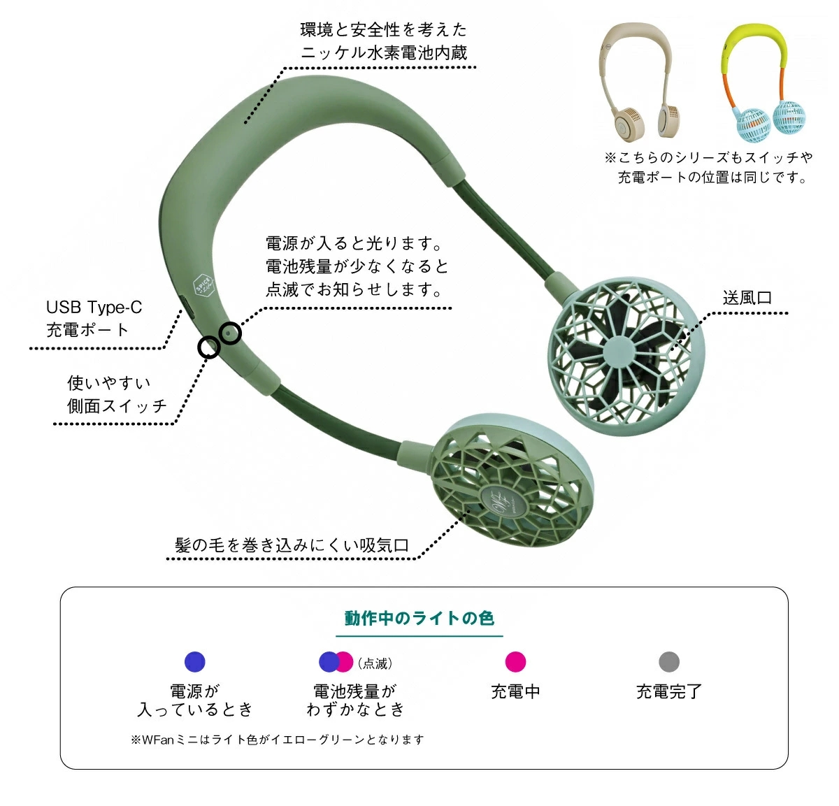 WFanはそんな不快な湿度を心地よい風で抑え、心地よい温度に調節できます。