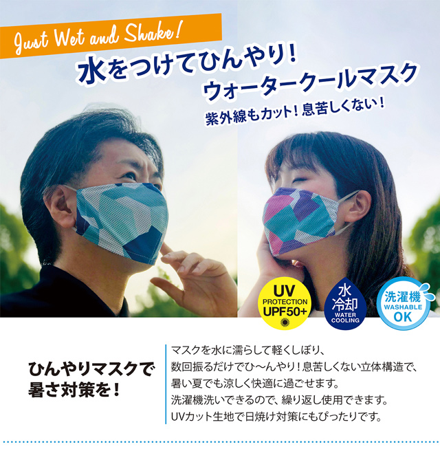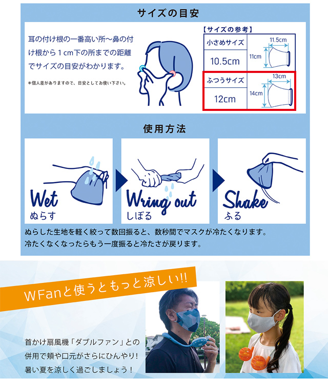 マスクを水に濡らして軽くしぼり、数回振るだけでひ~んやりします。