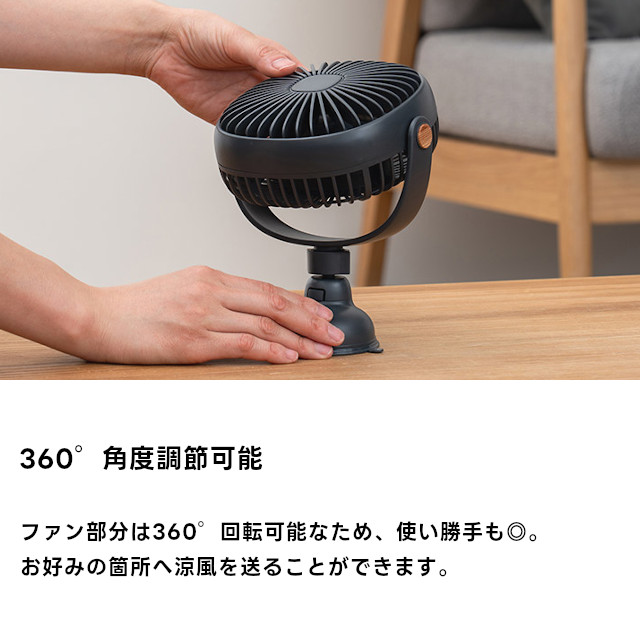 吸盤&クリップ&卓上置きも!マルチに使える3WAYファン