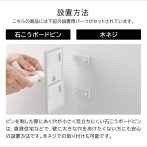 | 仕様 | 石こうボードピンセット(取り付けピース×4 クギ×12 キャップ×4) 木ネジ×4 耐荷重:1kg(静止荷重) 取り付け可能な壁 石こうボードピン使用時:壁紙・布壁紙・ビニール壁紙貼りなどの石こうボード、薄ベニヤ 木ネジ使用時:柱・板壁(厚さ1cm以上) ・プリント合板(裏側に水平にサンがある場所)・裏に下地材(間柱)が入っている壁 |