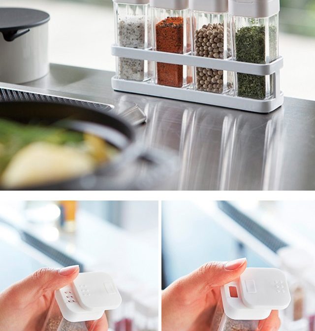 前後にフタをスライドさせ、分量を選んで出すことができます。