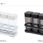 | 素材 | ラック:スチール(粉体塗装) マット:合成ゴム スパイスボトル 容器:アクリル樹脂 蓋上下:ポリエチレン |
