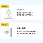 脇下のメッシュ素材が着用時に気になる汗のニオイを軽減します。