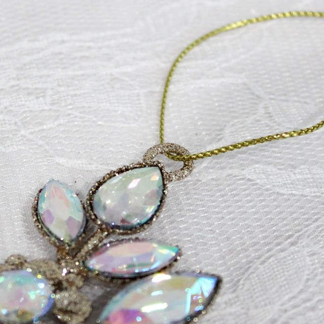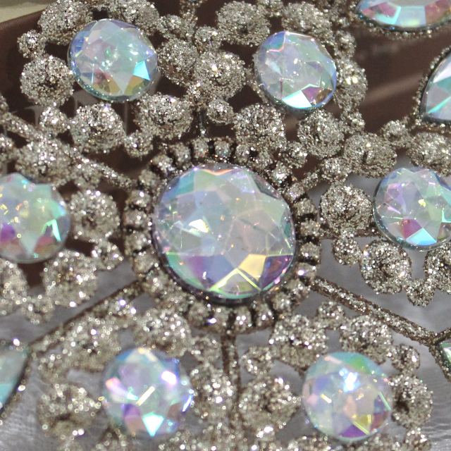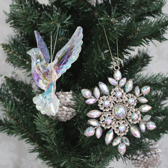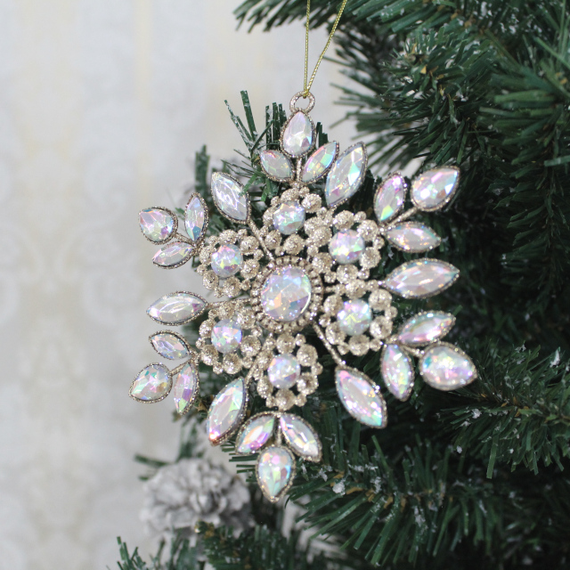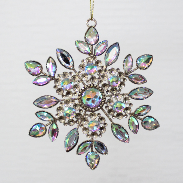 イリッドカラーのラインストーンをふんだんに装飾した、ラグジュアリで華やかなスノーフレークのクリスマスオーナメント。