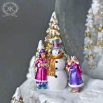 メタリックカラーの教会や遊ぶ子供たちを再現したオルゴール付きのスノードーム。