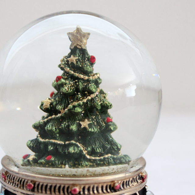 クリスマスツリーが入ったコンパクトサイズのスノードームオブジェ。