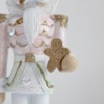 頭にはカップケーキを乗せ、手にはジンジャーブレッドクッキーとキャンディーを持ったスイーツモチーフのユニークなナッツクラッカーです。