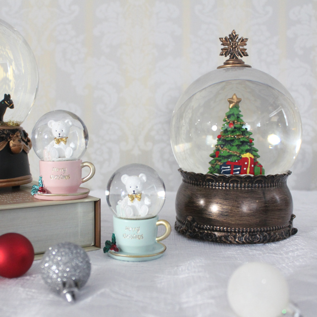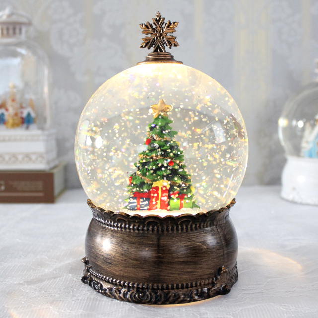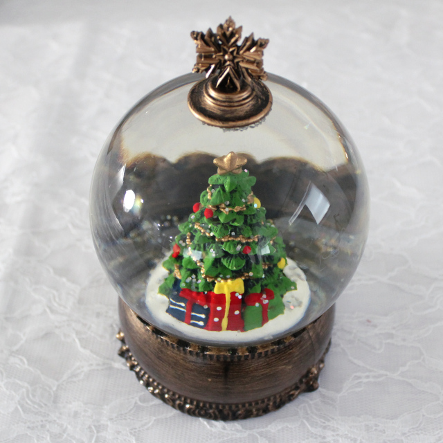 クラシカルなクリスマスツリーが入ったスノードームオブジェ。