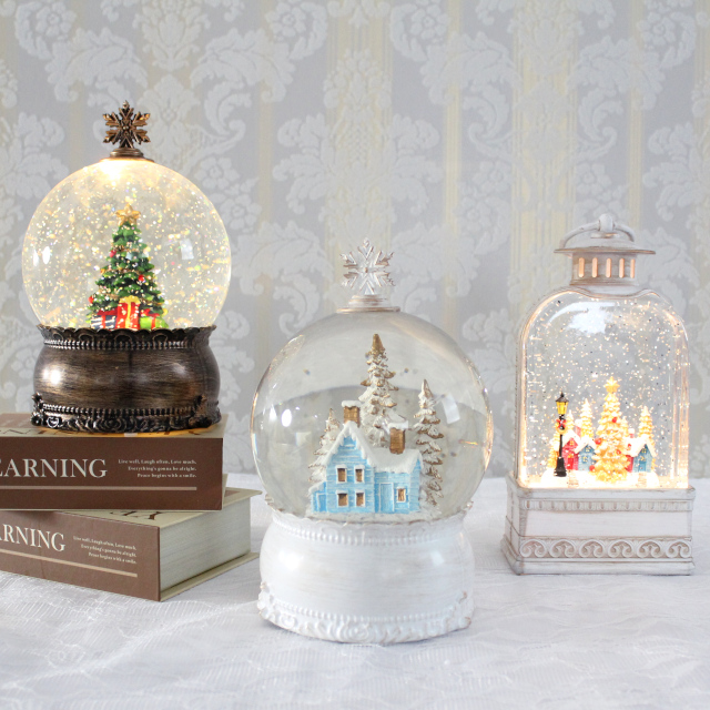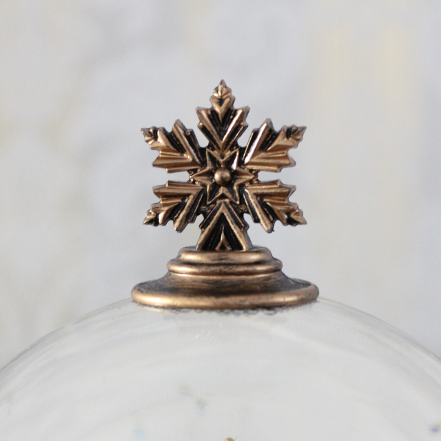 ヴィンテージ感のあるシックなカラーとデザインに、トップのスノーフレークがアクセントになった高級感のあるスノードームです。