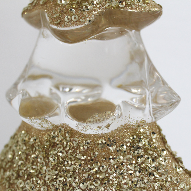 ゴールドのスパンコールを装飾したおしゃれなLEDライト付きのクリスマスツリーオブジェ。