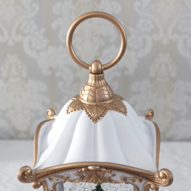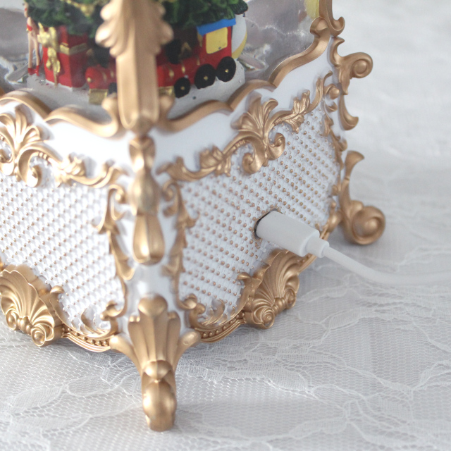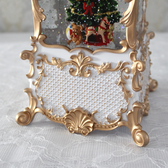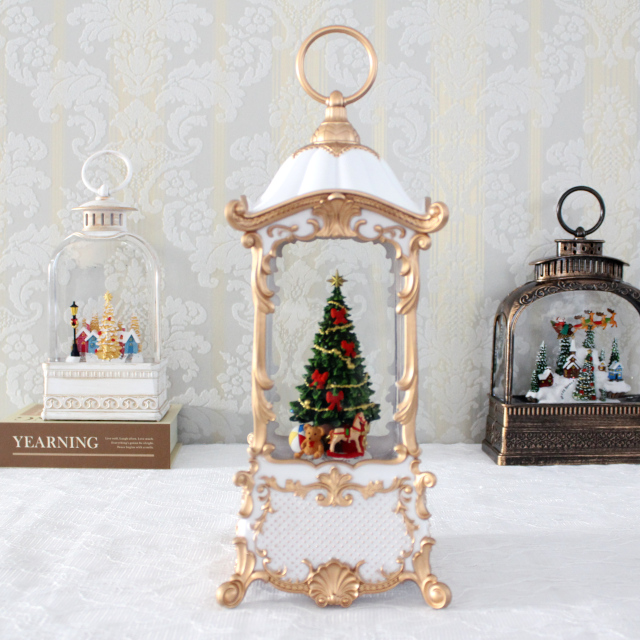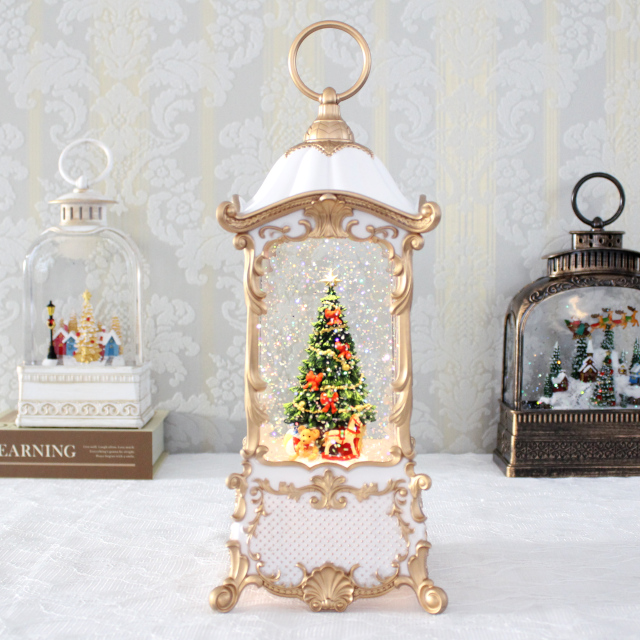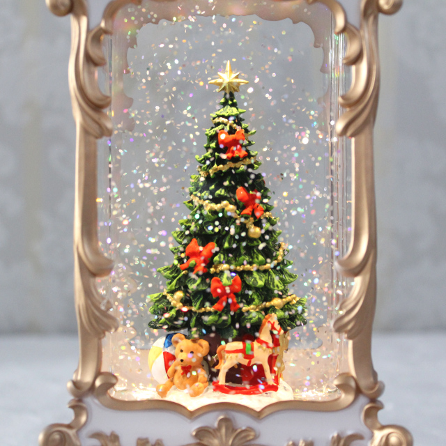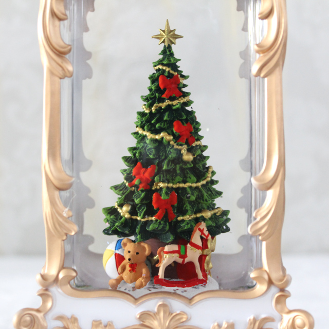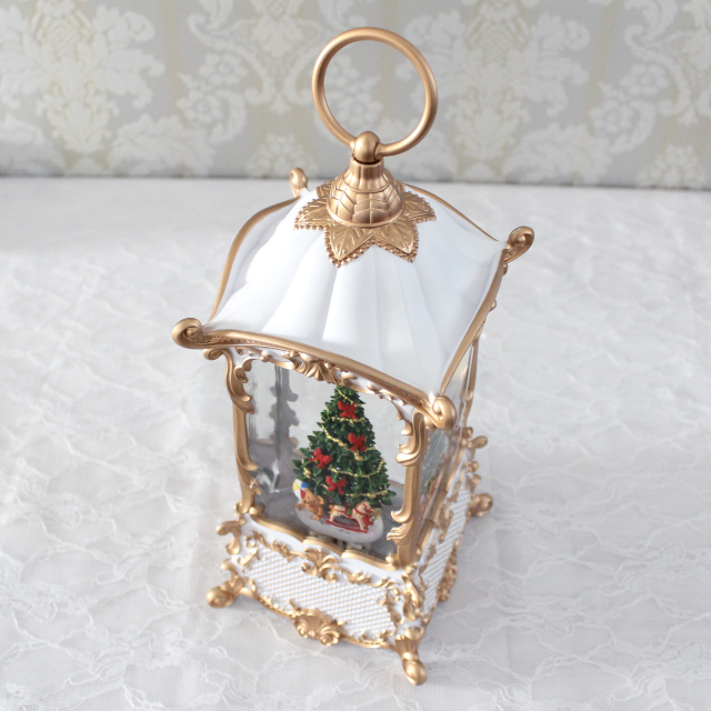 クリスマスツリーが入ったクラシカルなランタンのオルゴール付きオブジェ。