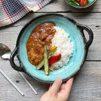 均窯トルコブルー手付きパスタ皿 YA-1372【丸五加藤吾助商店 プレート 皿 食器 カレー皿 パスタ皿 日本製 美濃焼 和食器 陶器 父の日 母の日 敬老の日 クリスマス】
