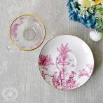 陶器製のソーサーも絵柄が施された華やかなデザインで、ケーキプレートとして使えます。