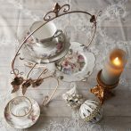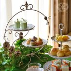 フレンチリリーと薔薇のレリーフが付いたおしゃれな2段ケーキスタンド