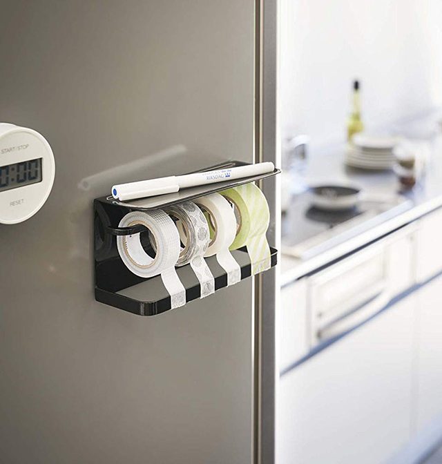 ラべリングによく使うマスキングテープとペンを一緒に冷蔵庫横に収納できるマスキングテープホルダー。