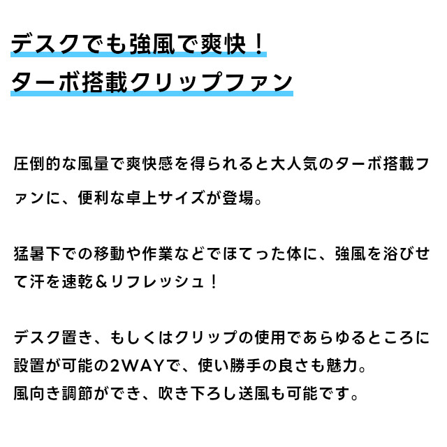 デスクでも強風で爽快!ターボ搭載クリップファン