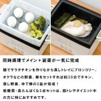 鍋でサラダチキン、付属の蒸しトレイでゆで卵や蒸し野菜が調理できます。