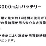 | 充電電池 | リチウムイオン電池 3.7V、8000mAh |