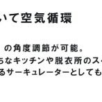 十分な風量と、リズム・自動首振り運転機能、上向き約90°の角度調節が可能な賢く便利な優れもの。