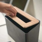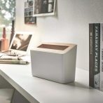 木目が美しいシンプルな卓上の蓋付きゴミ箱