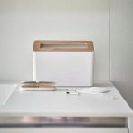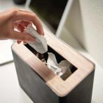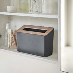 洗面上やデスク上に木目が美しいシンプルな卓上の蓋付きゴミ箱。