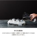 目盛りまでお水を入れて冷凍庫で4時間待つだけで簡単に特大サイズの丸氷が6個もできます。取り出しやすいシリコンのプッシュボタンがついているのも親切なデザイン。スタッキングもできるので、たくさん作り置きもできます。