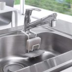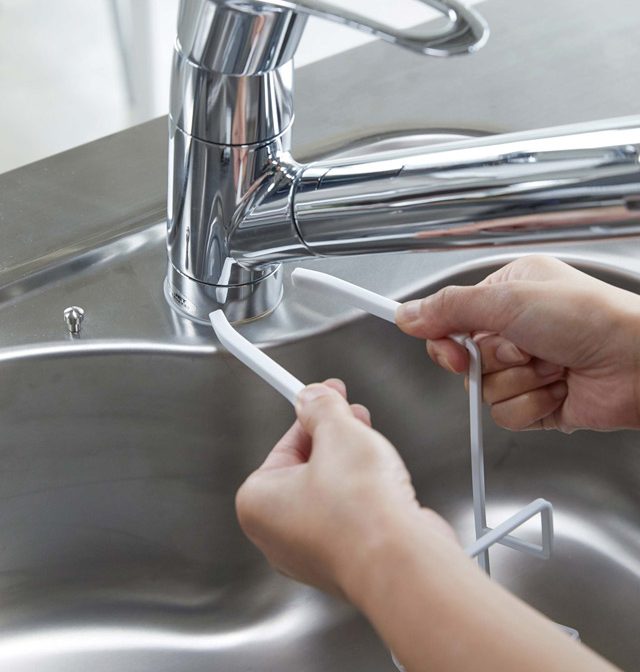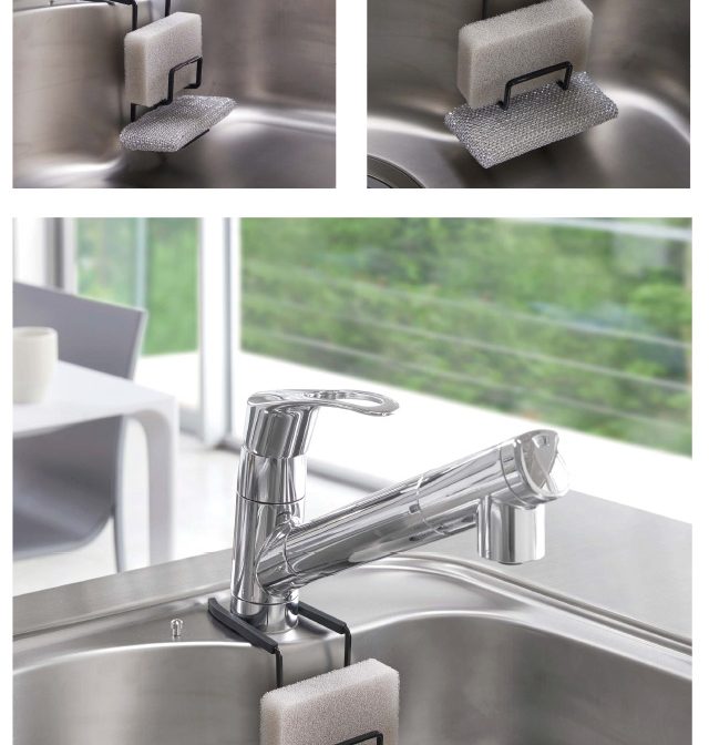 スチールの取り付け部がしっかりホールドするので、ずれ落ちることなく快適に使用できるスポンジホルダーです。