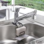 【tower】スポンジ ホルダー ダブル 4390 4391【山崎実業 KT-TW HM 蛇口 スポンジホルダー キッチン 洗い物 収納 スポンジ置き シンク 簡単設置】