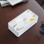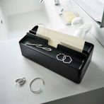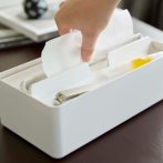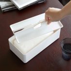 箱タイプ、ソフトパックのティッシュも対応。蓋はトレーになっているのでアクセサリーも収納可能です。