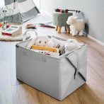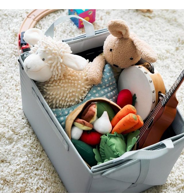 側面の面ファスナーを留めると持ち手付きの収納ケースになるので持ち運びやすく、お子様と一緒に楽しんでお片付けすることができます。