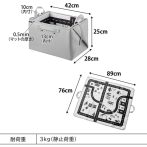 | サイズ | 組み立て時:W42×D28×H25cm(持ち手含まず) 展開時:W89×D76×H0.5cm(ベルト・持ち手含まず) 商品重量:735g |