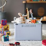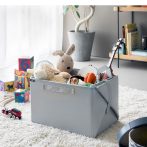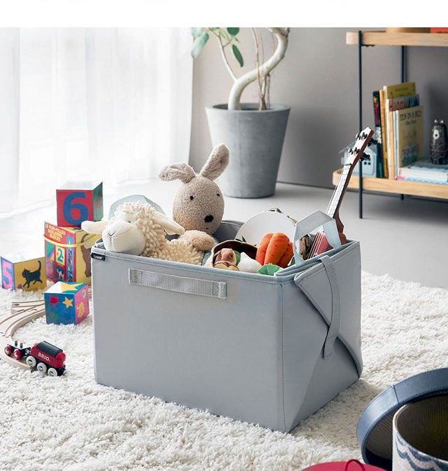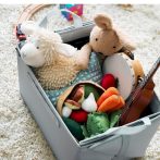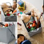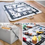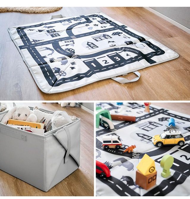 広げるとプレイマットとして遊べるおもちゃ収納ケースです。