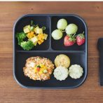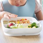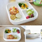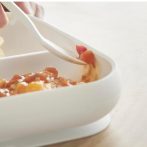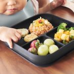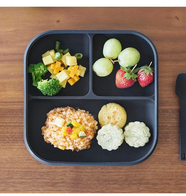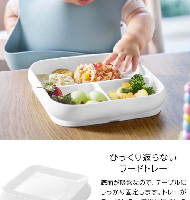 吸盤付きで仕切りがあり、トレーのフチに返しがあるのでスプーンですくいやすく、 こぼれにくいシリコーン製のベビーフードトレーです。