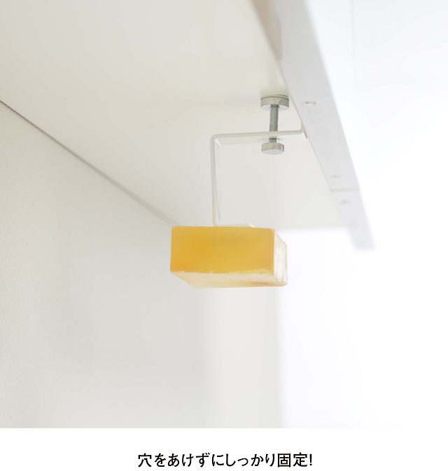 | 対応サイズ・対応箇所 | 取り付け可能な洗面所の吊り戸棚 棚板の厚さ:約1.3~3cm以内 洗面台と吊り戸棚との間に必要な高さ:約9.5cm+石鹸の厚み以上 |