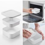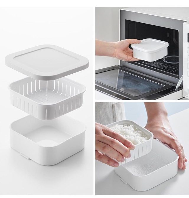 ザル付きなので、蒸し器のように蒸気が全体に行き渡り、温まりやすく一膳分(150g)の冷凍ごはんがふっくらと炊き立てのように仕上がる容器です。
