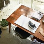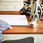 持ち運びに便利で、卓上でアイロン掛けできる四角い形状。
