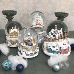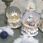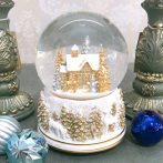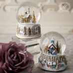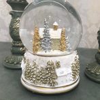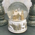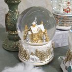 台座にもゴールドの森に囲まれた街並みがデザインされ、エレガントで高級感のあるスノードームです。