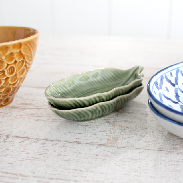 バナナリーフトレイ Sサイズ TWT-B-007S【マライカ MALAIKA 陶器 お皿 豆皿 小鉢 食器 プレート ランチプレート アクセサリートレー アクセサリー収納 バナナ アフタヌーンティー ヌン活 母の日 父の日 敬老の日 クリスマス Xmas】