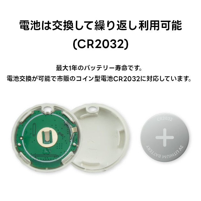 電池は交換して繰り返し利用可能(CR2032)