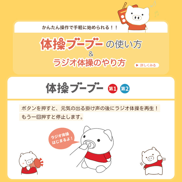 鼻のスイッチを押すだけでラジオ体操(第1もしくは第2収録)が出来ちゃいます。