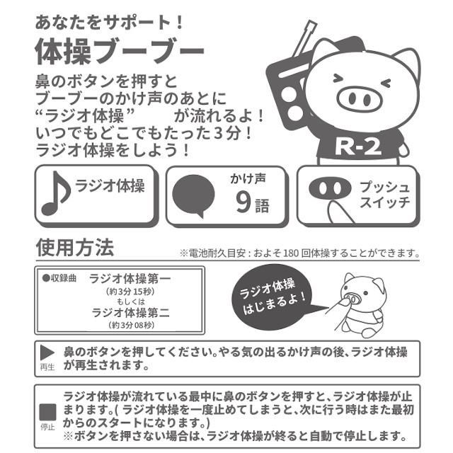 BOOBOO 体操ブーブー 第1 第2 v1 (単四電池使用) OX-3192 OX-3209【ハシートップイン Hashy hashytopin ラジオ体操 健康 運動 ダイエット 体操 健康促進 健康維持 健康グッズ ギフト バレンタイン ホワイトデー 母の日 父の日 敬老の日 クリスマス xmas】