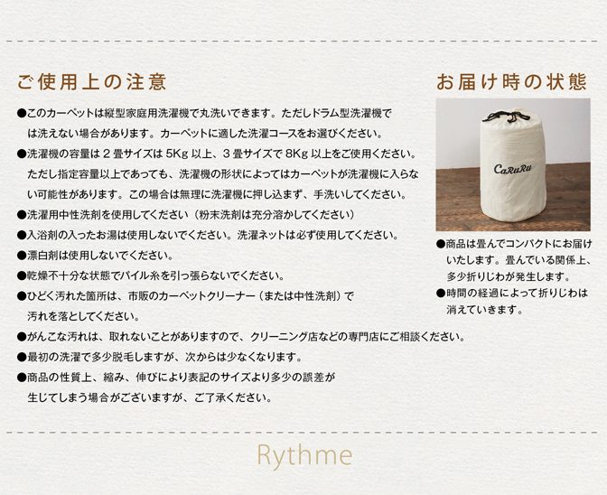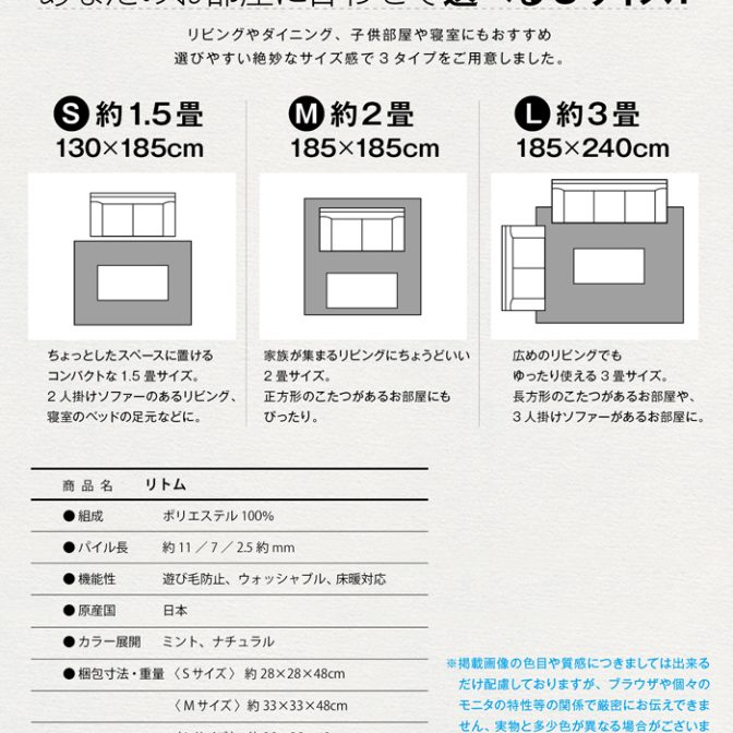 ウォッシャブル、遊び毛なし、床暖対応
