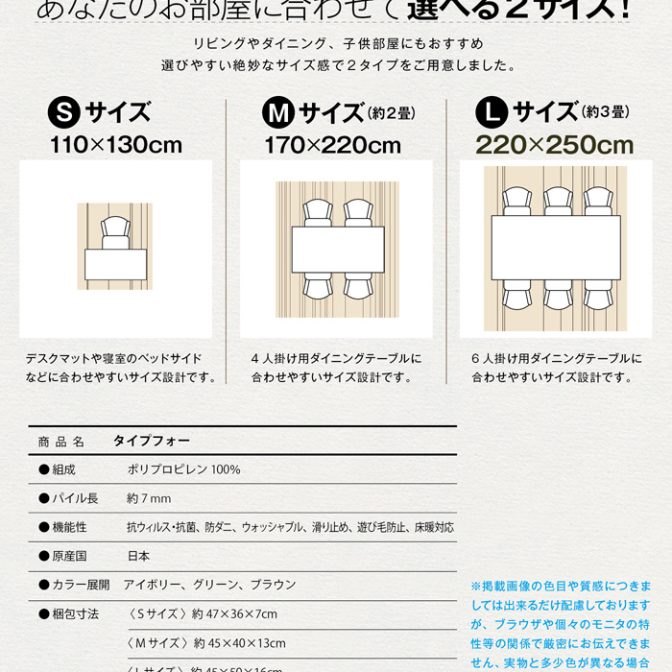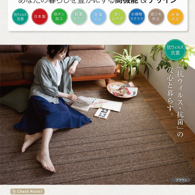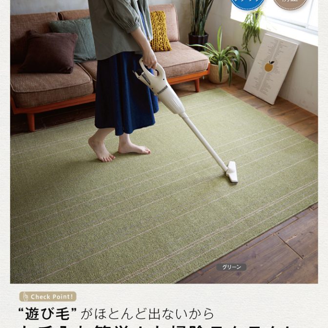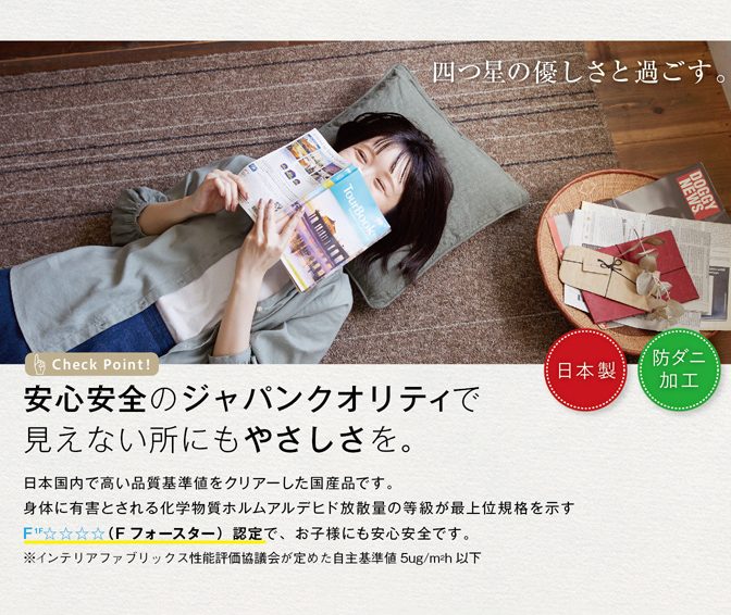 ウォッシャブル、F☆☆☆☆、すべり止め、遊び毛なし、床暖対応、クレンゼ