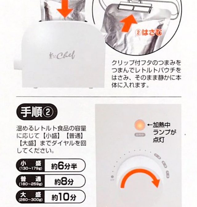 とにかく簡単!レトルトパウチ食品を入れてダイヤルを回すだけ!