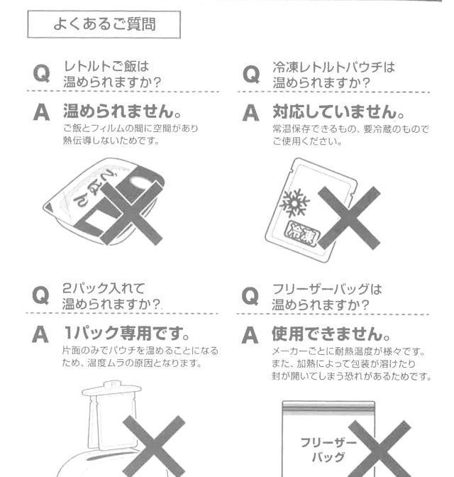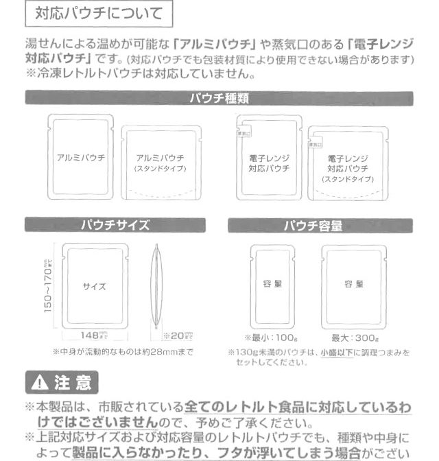 レトルトパウチの下側に内容物が片寄っている場合は、平らにならしてからセットしてください。