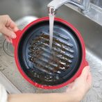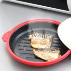特殊素材がマイクロ波を熱に変換し、電子レンジでグリル料理ができ焼き目も付くグリルパン。