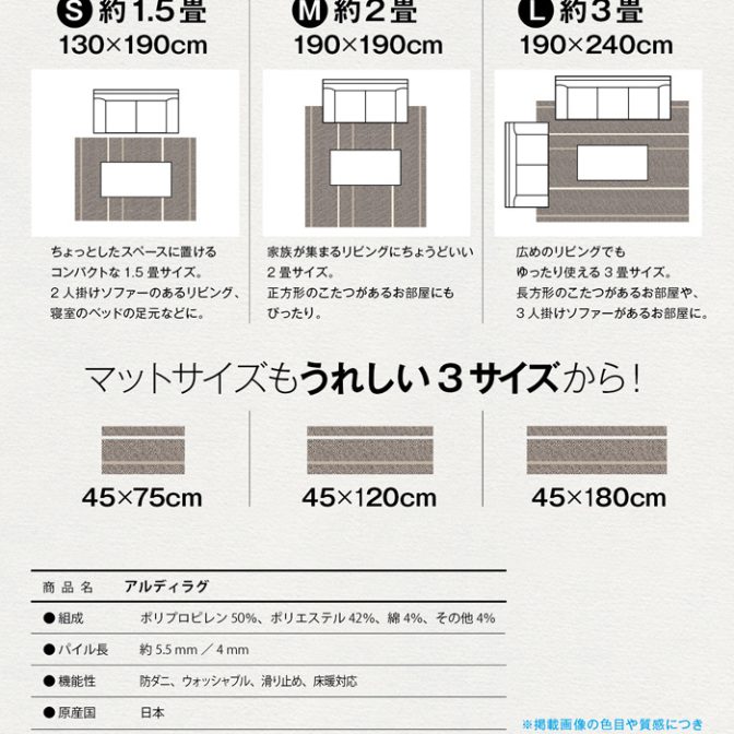 防ダニ、ウォッシャブル、滑り止め、床暖対応