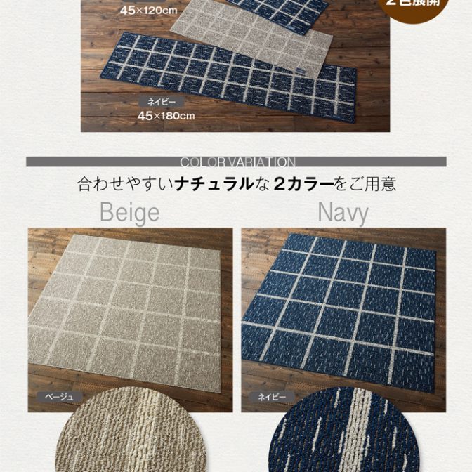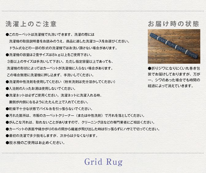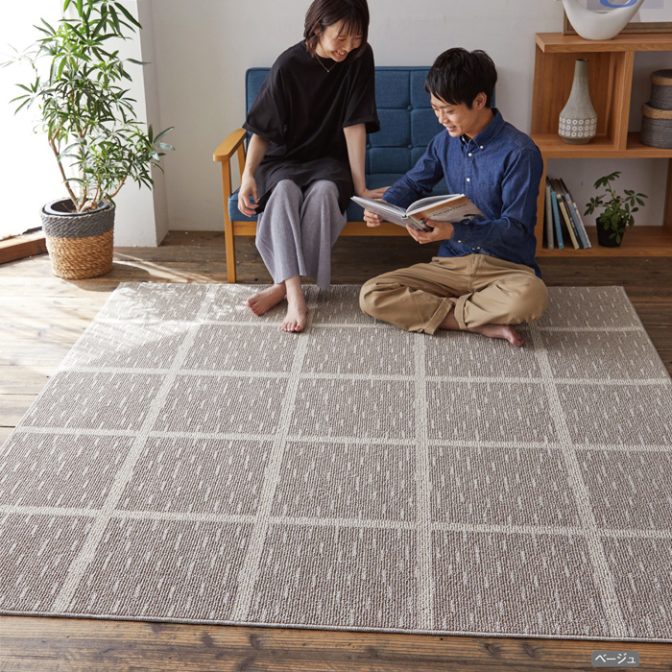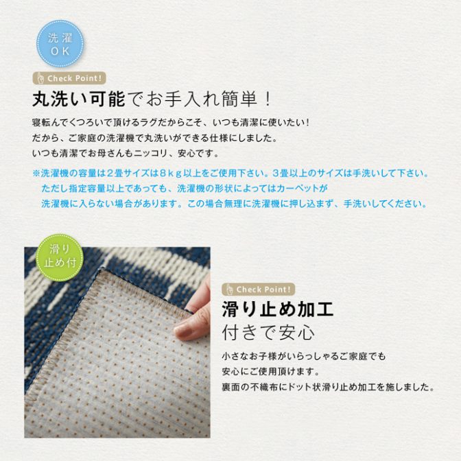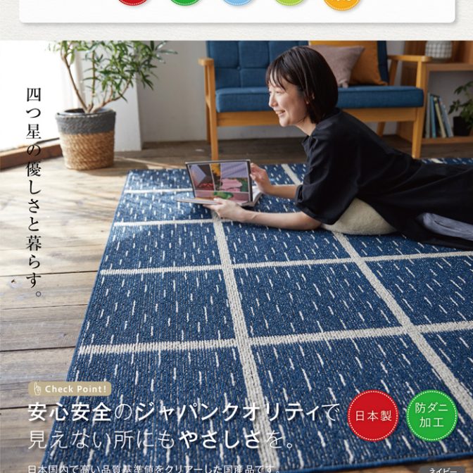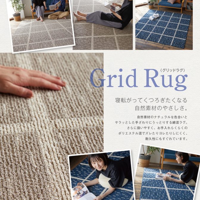 自然素材のナチュラルな風合い。洗えるすべり止め日本製ラグ。