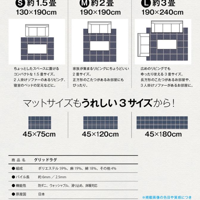 防ダニ、ウォッシャブル、滑り止め、床暖対応